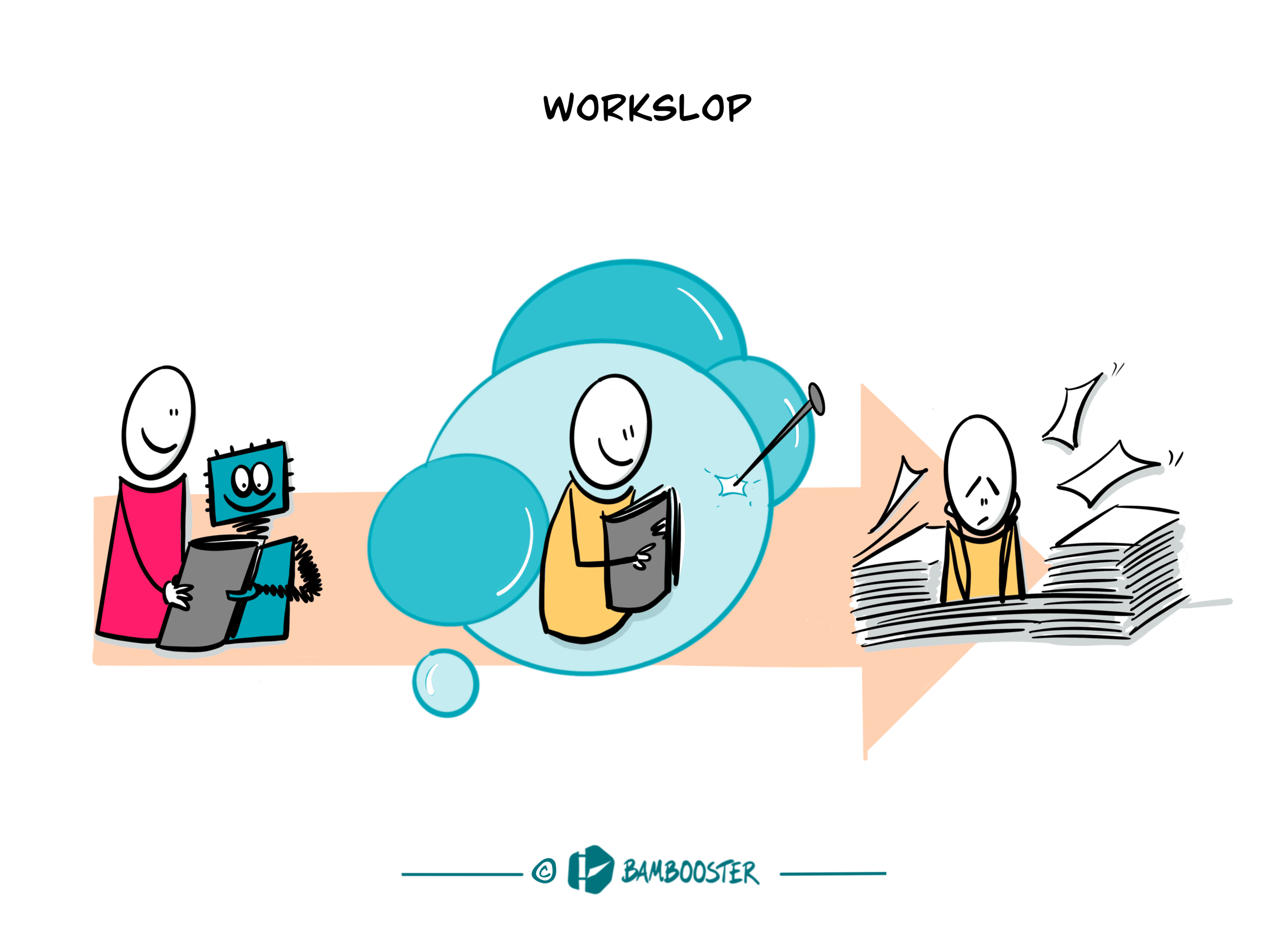 ✏ Absence of trustThe fear of being vulnerable prevents team members from building trust. Everyone's emails sound the same. Polished. Professional. Perfect. People start to passively read AI notes from their slides presentation, instead of bringing energy and engagement (they look like robots, we start to see that as well in interviews, did you ? ) But your team whispers: "Did she actually write this or is it ChatGPT?". It destroys authenticity. When everything looks perfect, nothing feels real. Workslop also has a big impact here because once you get workslop from a colleague, the trust is broken. ✏ Fear of conflictThe desire to preserve artificial harmony stifles productive conflict. Here, you see no discussion about AI risks, and its impact on jobs, environment, democracy, and what happens when AGI (Artificial General Intelligence). The "anyway we can do nothing about it" attitude or the avoidance attitude of leaders, means team members stay silent. Everyone pretends everything is fine. It's not fine. They're just not telling you. ✏ Lack of commitmentThe lack of clarity prevents team members from making decisions they stick to. Too many moments are delegated to AI. "Let's use AI for meeting notes!" Great idea. Except... the meeting had no agenda. No decisions to make. No accountability. Just 60 minutes of updates that could have been an email. AI notes ≠ buy-in. AI notes ≠ engagement. AI notes ≠ clarity. ✏ Avoidance of accountabilityThe need to avoid discomfort prevents holding each other accountable. "Let's use AI to write our goals." For some companies, it was even mandatory. This moment should be designed to align and engage teams. But the process is boring, long, and box-checking, let's give that to AI. Nobody asks the hard questions. ✏ Inattention to resultsThe pursuit of individual goals erodes focus on collective success. "Summarize this 60-slide deck so I can listen in my car." When before it was 20 slides. Maybe the real question is: why 60 slides?. Again, here workslop: more content. more slides. not a better impact. Individual productivity might go up, but the collective results are flat or down. ✨ HackThis is not easy and I don't have all the answers. We will all have to learn how to adapt and keep our human touch with trial and error. If you were caught in any of the traps above - welcome to the club. Here's how to start: ✏ 1- Keep it human